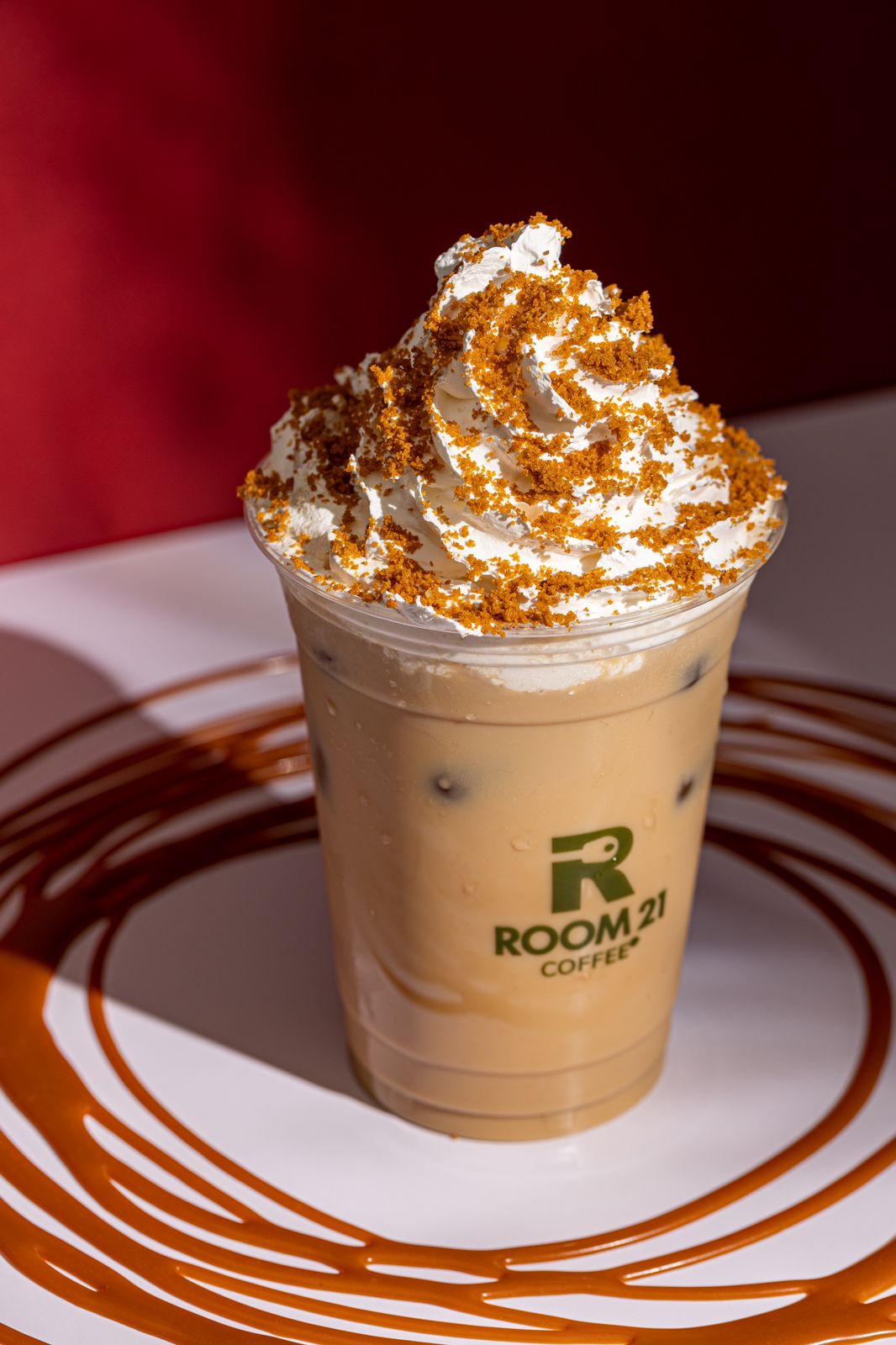 Delicious drink made with caramel, hazelnut, and a rich espresso flavor. All topped with whipped cream and a sprinkle of Lotus biscuit.