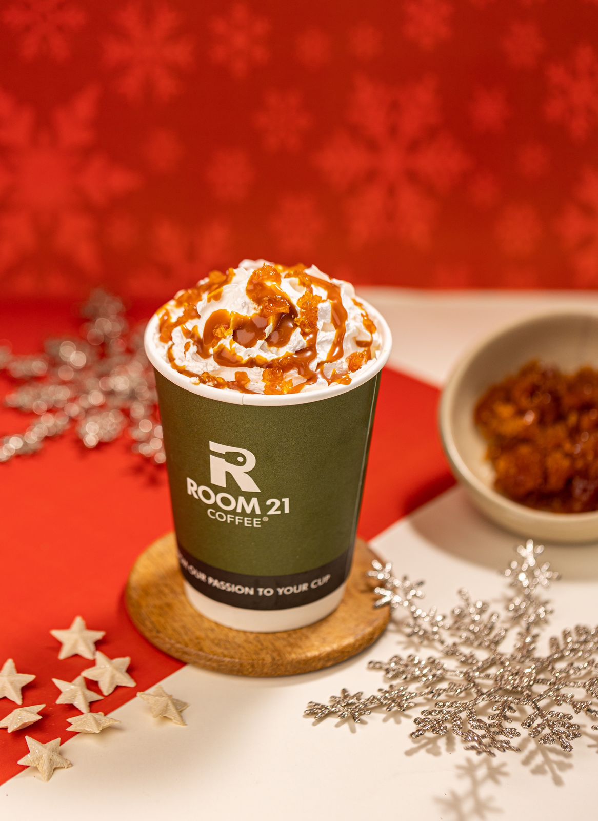 Holiday Hot Drinks Pop Corn Gourmet Latté Small Medium 42 DH 44 DH Delicious drink with a rich flavor of popcorn, espresso, and salted caramel. Topped with whipped cream, caramel sauce, and caramelized popcorn. Nutella Gourmet Latté Small Medium 42 DH 44 DH Nutella chocolate melted in hot milk, with a rich hazelnut and espresso flavor. All topped with whipped cream and chocolate flakes. Toffee Nut Latté Small Medium 42 DH 44 DH Delicious drink made with caramel, hazelnut, and a rich espresso flavor. All topped with whipped cream and a sprinkle of Lotus biscuit. Caramel Brûlée Latté Small Medium 42 DH 44 DH A preparation made with salted caramel and vanilla, and a rich espresso flavor. All topped with whipped cream and pieces of caramel shards. Spiced Chai Tea Small Medium 42 DH 44 DH Hot milk with delicious spices. Topped with milk foam for a creamy texture and cinnamon for a spicy and warm flavor.